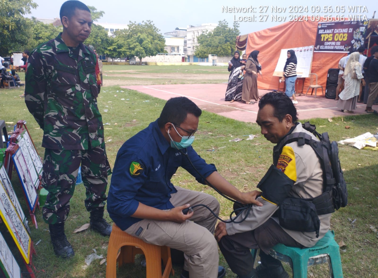 Kapolres Bima Kota AKBP Yudha Pranata, S.I.K., S.H., melalui Kasi Dokes Penata dr. Asrarudin, menjelaskan bahwa pemeriksaan kesehatan ini melibatkan personel TNI-Polri yang bertugas di TPS masing-masing.