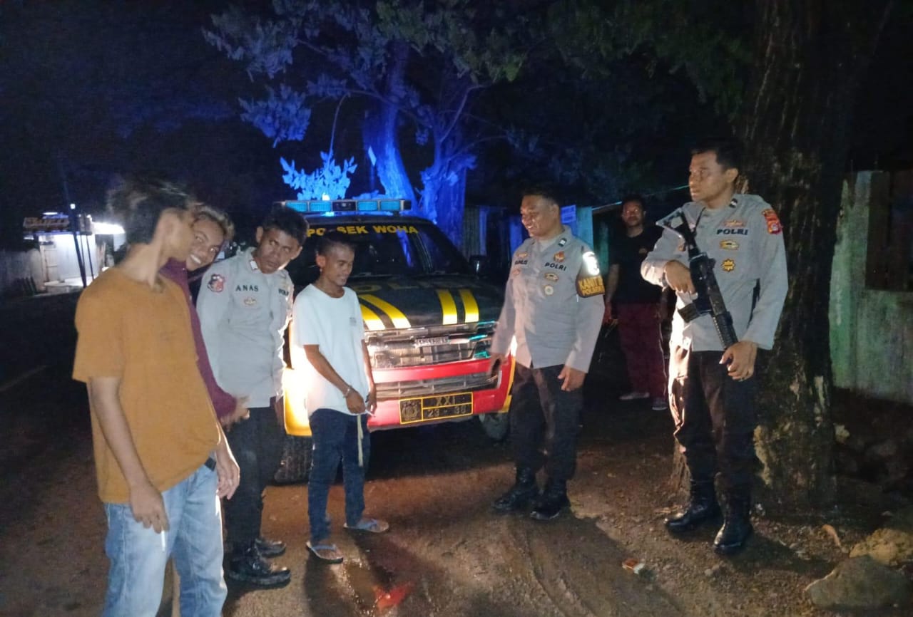 Tim Patroli juga menyampaikan himbauan Kamtibmas kepada Masyarakat / pemuda yang sedang nongkrong untuk sama-sama menjaga situasi Kamtibmas yang aman dan Kondusif di wilkum woha.