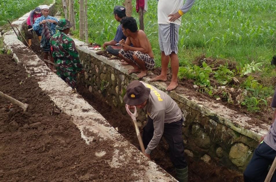 Gorong gorong itu melibatkan warga sekitar dan bhabinkamtibmas membersihkan irigasi agar aliran Air untuk pertanian mengalir dengan lancar.