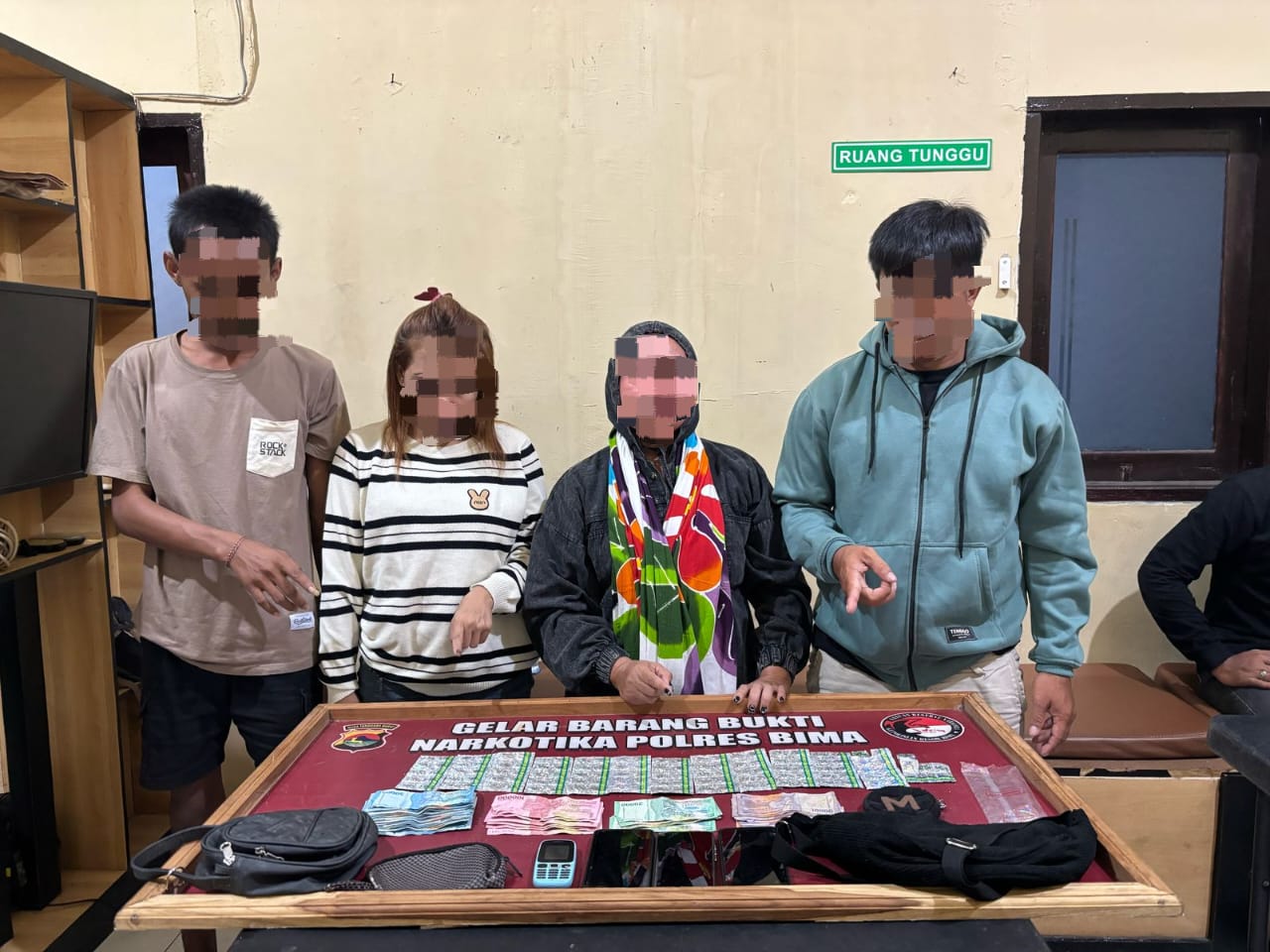 Empat orang 2 diantaranya perempuan masing masing berinisial IH (L/28) Desa Rato Kecamatan Bolo, JD (L/24) Desa Cenggu Kecamatan Belo, SM (P/45) Rabakodo dan JR (P/26) Rabakodo Kecamatan Woha Kabupaten Bima.