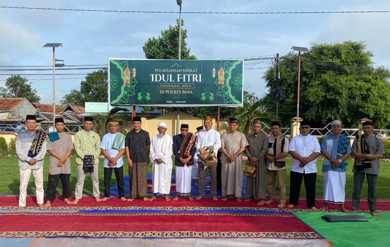 Hadir dalam pelaksanaan Sholat Idul Fitri 1446 H./2025 M. itu Kapolres Bima AKBP Eko Sutomo S.I.K,.M.I.K., Ketua Bhayangkari Cabang Bima Ny. Dian Eko Sutomo,Wakapolres Kompol Saogi Sujana Angsar PJU lingkup Polres Bima dan masyarakat sekitar.