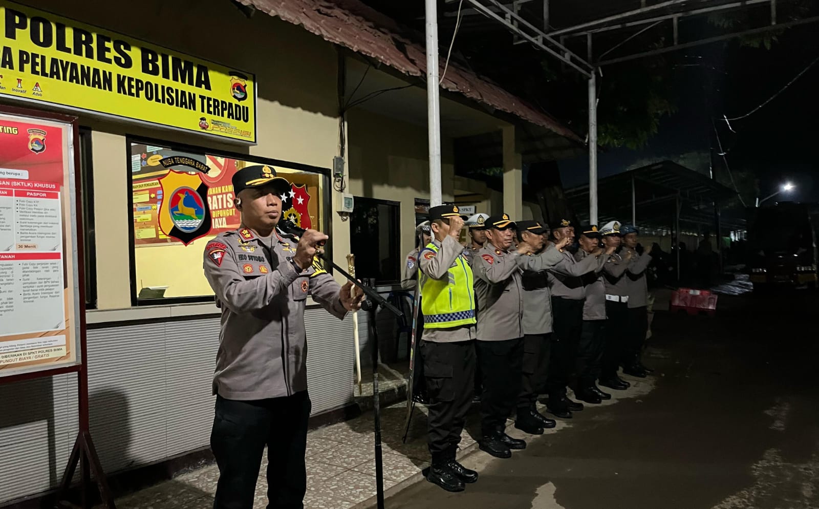 Bima, NTB (02 April 2025) – Kepala Kepolisian Resor Bima Polda NTB AKBP Eko Sutomo S.I.K.,M.IMK., memimpin Apel Gelar Pasukan Pengamanan Malam Takbiran hari raya Idul Fitri 1446 H, di lapangan Apel Polres Bima Minggu malam , (30/03/25) sekira pukul 20.00. WITA.