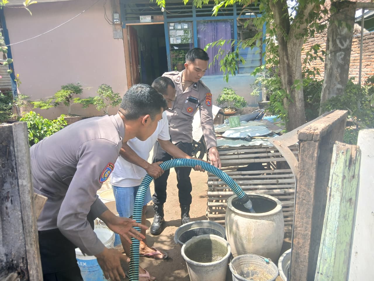 “Pada hari Kamis tanggal 16 Oktober 2025, sekitar pukul 09.00 Wita, Sat Binmas Polres Bima Kota melaksanakan kegiatan pembagian air bersih yang diinisiasi oleh Polres Bima Kota. Tujuannya adalah membantu masyarakat dalam memenuhi kebutuhan air bersih, terutama di tengah keterbatasan pasokan air di beberapa kelurahan,” ungkap Ipda Baiq Fitria.
