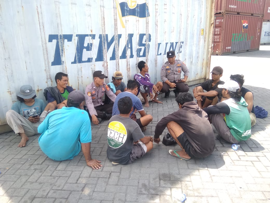 “Personel memberikan imbauan kepada buruh, sopir, dan pedagang agar tidak membawa, menyimpan, maupun menguasai senjata tajam (sajam), serta tidak mengonsumsi atau menjual minuman keras (miras) yang dapat mengganggu keamanan dan ketertiban di area pelabuhan,” jelas Ipda Baiq Fitria.