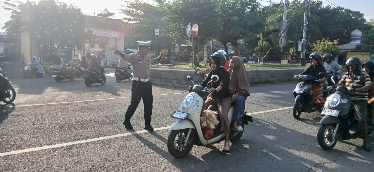 “Personel membantu menyeberangkan anak-anak sekolah, pengguna jalan baik pejalan kaki maupun pengendara kendaraan roda dua dan roda empat, serta masyarakat yang beraktivitas pada pagi hari,” jelasnya.